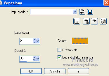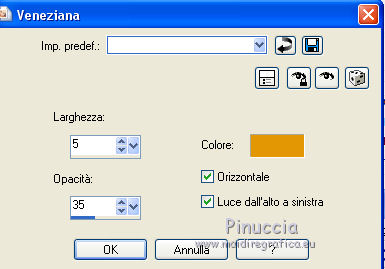 57. Effetti>Effetti di trama>Veneziana, con i settaggi precedenti e Orizzontale selezionato.