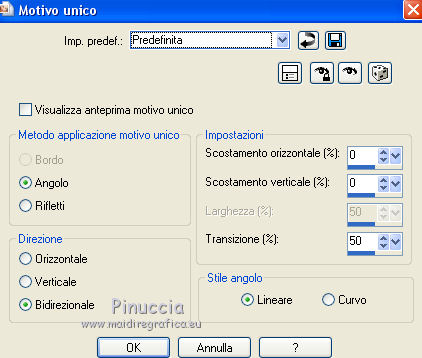 Effetti>Effetti di immagine>Motivo unico, con i settaggi standard.