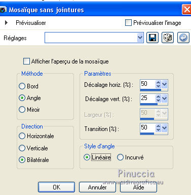 13. Effets>Effets d'image>Mosaïque sans jointures, par défaut.