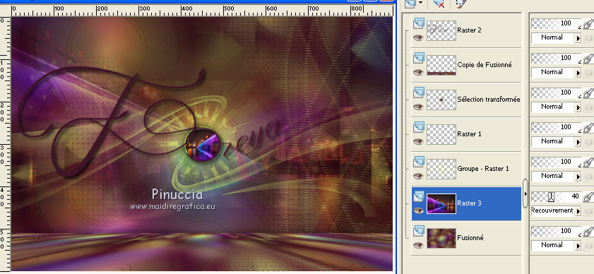Placer le calque en mode Recouvrement et réduire l'opacité à 40%.