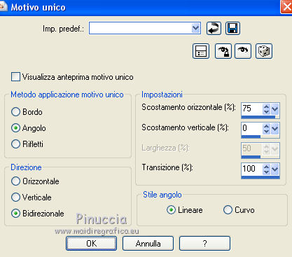 16. Effetti>Effetti di immagine>Motivo unico, con i settaggi standard.