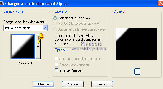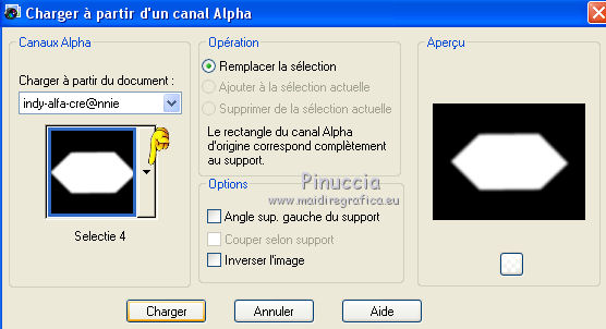 Sélections>Charger/Enregistrer une sélection>Charger à partir d'un canal alpha.