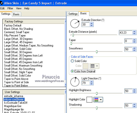 Metti il preset nella cartella del filtro Alien Skin Eye Candy 5 Impact>Settings>Extrude.
