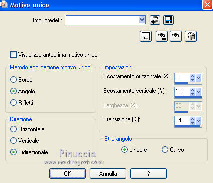 10. Effetti>Effetti di immagine>Motivo unico, con i settaggi precedenti.