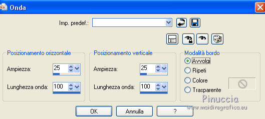 15. Effetti>Effetti di distorsione>Onda, con i settaggi precedenti.