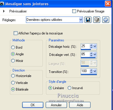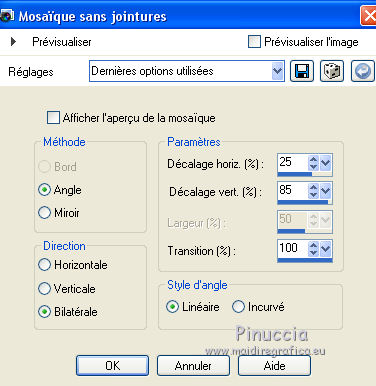 10. Effets>Effets d'image>Mosaïque sans jointures, par défaut.