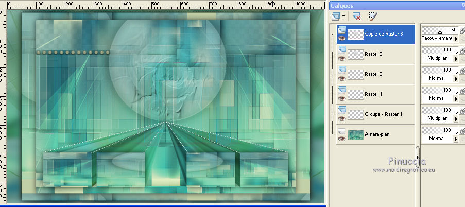 61. Placer le calque en mode Recouvrement et réduire l'opacité à 50%.