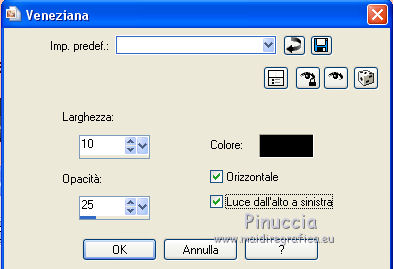 Effetti>Effetti di trama>Veneziana, con i settaggi precedenti.