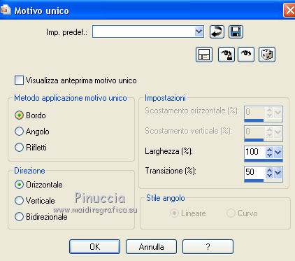 6. Effetti>Effetti di immagine>Motivo unico, con i settaggi standard.