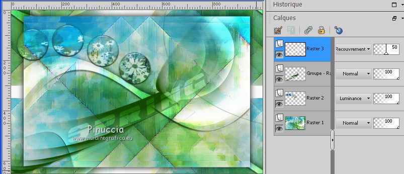 32. Placer le calque en mode Recouvrement et réduire l'opacité à 50%.