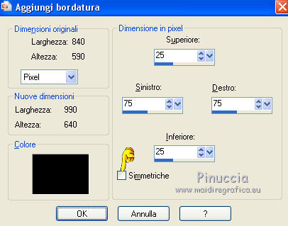 Immagine>Aggiungi bordatura, simmetriche non selezionato, colore di sfondo.