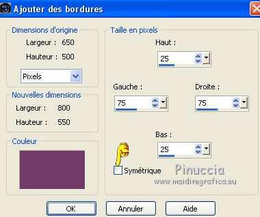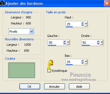 21. Image>Ajouter des bordures, 25 pixels, symétrique décoché, couleur d'avant plan.