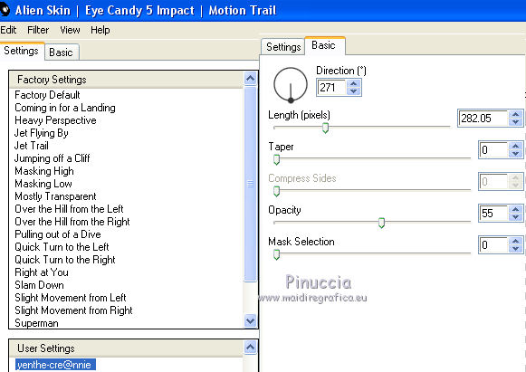 16. Effetti>Plugins>Alien Skin Eye Candy 5 Impact - Motion Trail.