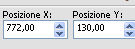 Imposta Posizione X: 772,00 e Posizione Y: 130,00.