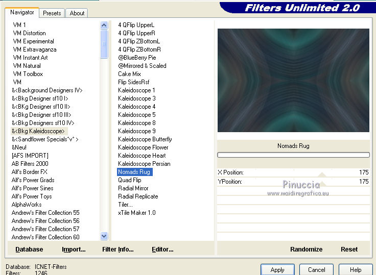 7. Effetti>Plugins>Filters Unlimited 2.0 - &<Bkg Kaleidoscope> - Nomads Rug.
