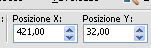 e imposta Posizione X: 421,00 e Posizione Y: 32,00.