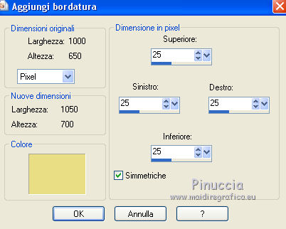 Immagine>Aggiungi bordatura, 25 pixels, simmetriche, colore di primo piano iniziale #e9de83.