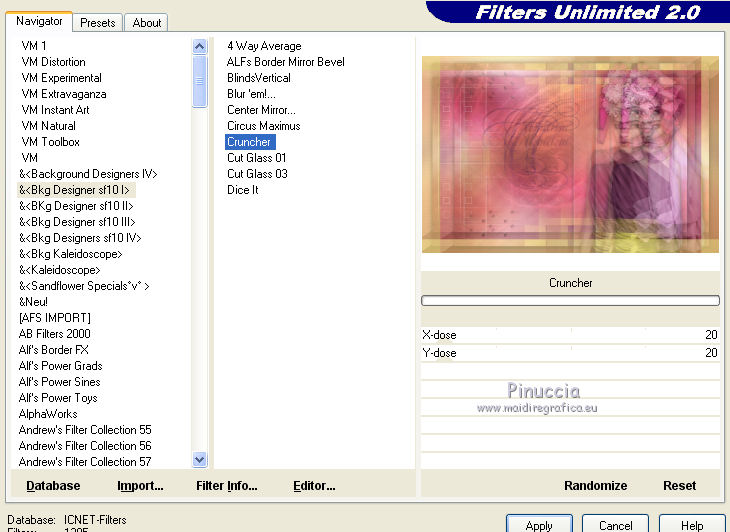 4. Effetti>Plugins>Filters Unlimited 2.0 - &<Bkg Designer sf10I> - Cruncher.