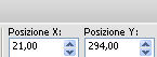 e imposta Posizione X: 21,00 e Posizione Y: 294,00.