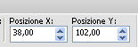 Imposta Posizione X: 38,00 e Posizione Y: 102,00.