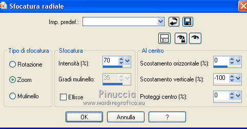 Regola>Sfocatura>Sfocatura radiale, con i settaggi precedenti.