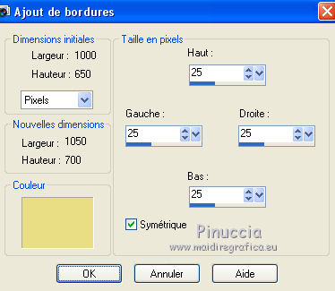 Image>Ajouter des bordures, 25 pixels, symétrique, première couleur d'avant plan #e9de83.