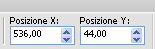 Imposta Posizione X: 536,00 e Posizione Y: 44,00.