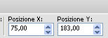 e imposta Posizione X: 75,00 e Posizione Y: 183,00.
