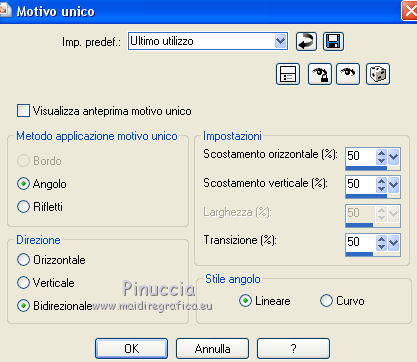 16. Effetti>Effetti di immagine>Motivo unico, con i settaggi precedenti.