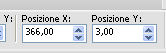e imposta Posizione X: 366,00 e Posizione Y: 3,00.
