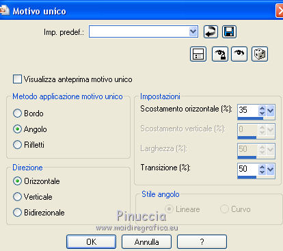 24. Effetti>Effetti di immagine>Motivo unico, con i settaggi precedenti, ma Orizzontale selezionato.