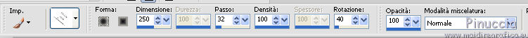cambia i settaggi de pennello: dimensione 250, rotazione 40