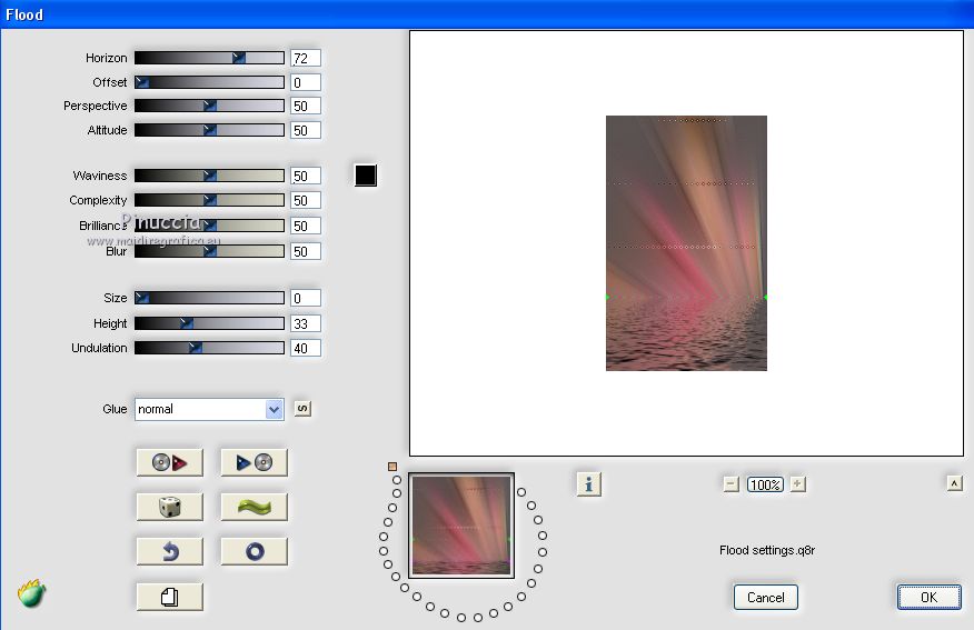 43. Effetti>Plugins>Flaming Pear - Flood, con i settaggi precedenti.