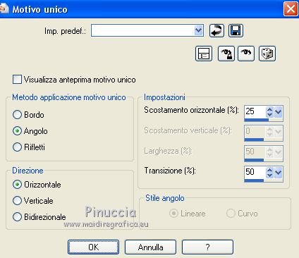11. Effetti>Effetti di immagine>Motivo unico, con i settaggi standard.