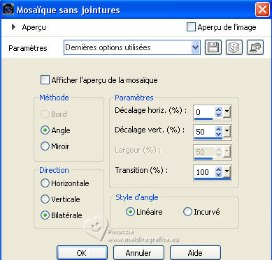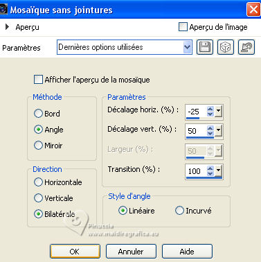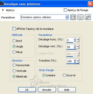 19. Effets>Effets d'image>Mosaïque sans jointures, par défaut.