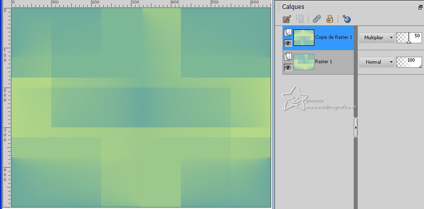 6. Placer le calque en mode Multiplier, et réduire l'opacité à 50%.