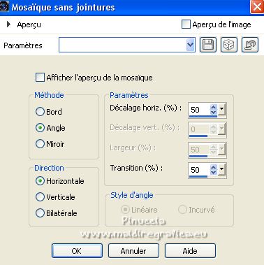 4. Effets>Effets d'image>Mosaïque sans jointures, par défaut.