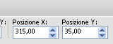 e imposta Posizione X: 315,00 e Posizione Y: 35,00.