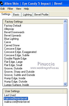 Seleziona il preset kae-cre@nnie-bevel e ok.