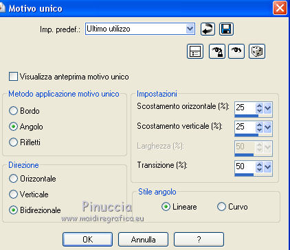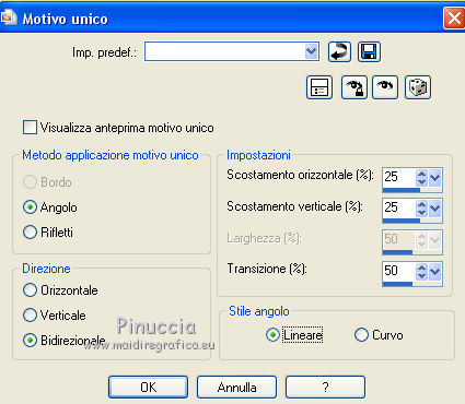 Effetti>Effetti di immagine>Motivo unico, con i settaggi precedenti.
