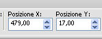 Imposta Posizione X: 479,00 e Posizione Y: 17,00.