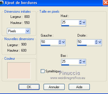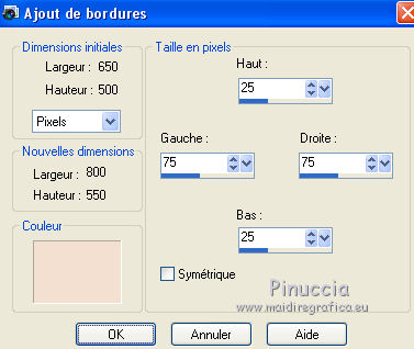 6. Image>Ajouter des bordures, symétrique décoché, couleur d'avant plan.