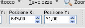 Imposta Posizione X: 649,00 e Posizione Y: 91,00.