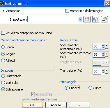 16. Effetti>Effetti di immagine>Motivo unico, con i settaggi precedenti.