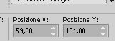 e imposta Posizione X: 59,00 e Posizione Y: 101,00.
