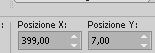 Imposta Posizione X: 399,00 e Posizione Y: 7,00.