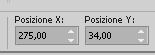 Imposta Posizione X: 275,00 e Posizione Y: 34,00.