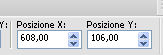 e imposta Posizione X: 608,00 e Posizione Y: 106,00.
