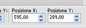 e imposta Posizione X: 595,00 e Posizione Y: 289,00.