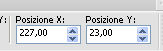 e imposta Posizione X: 227,00 e Posizione Y: 23,00.